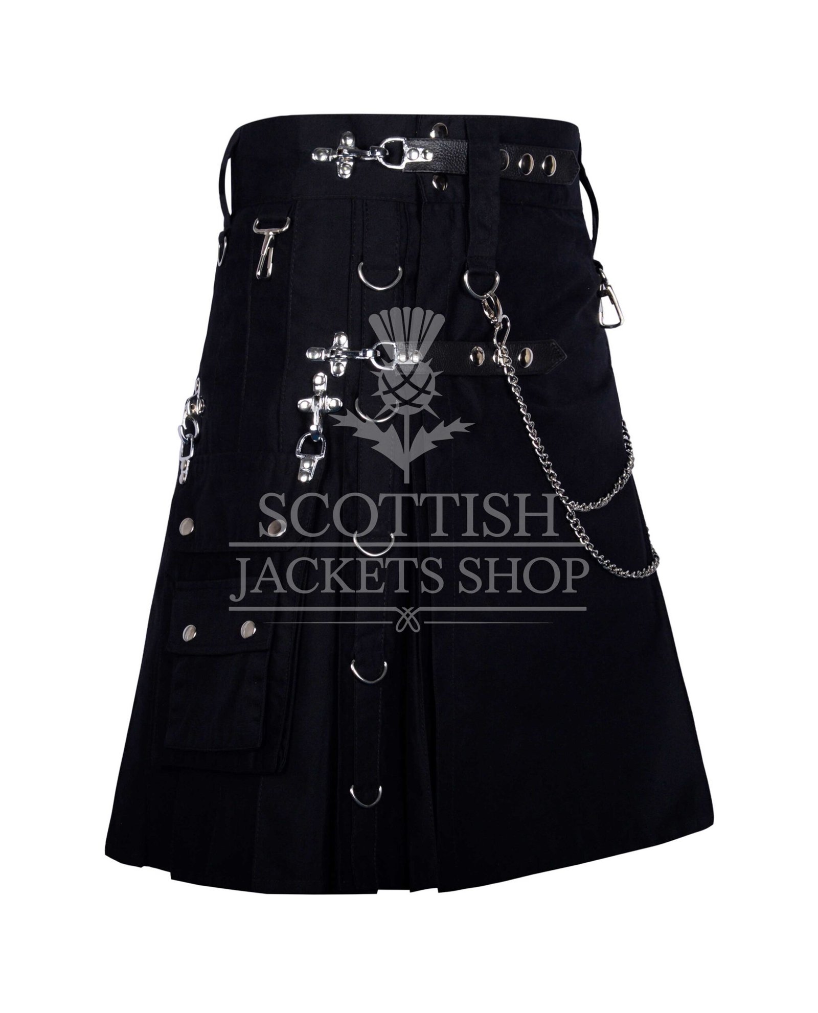 Step boldly into alternative fashion with the Black Cotton Gothic Kilt, a powerful fusion of traditional kilt structure and modern gothic style. Whether you’re heading to a concert, festival, or just expressing your dark aesthetic, this kilt is built to stand out while offering comfort, utility, and undeniable attitude.