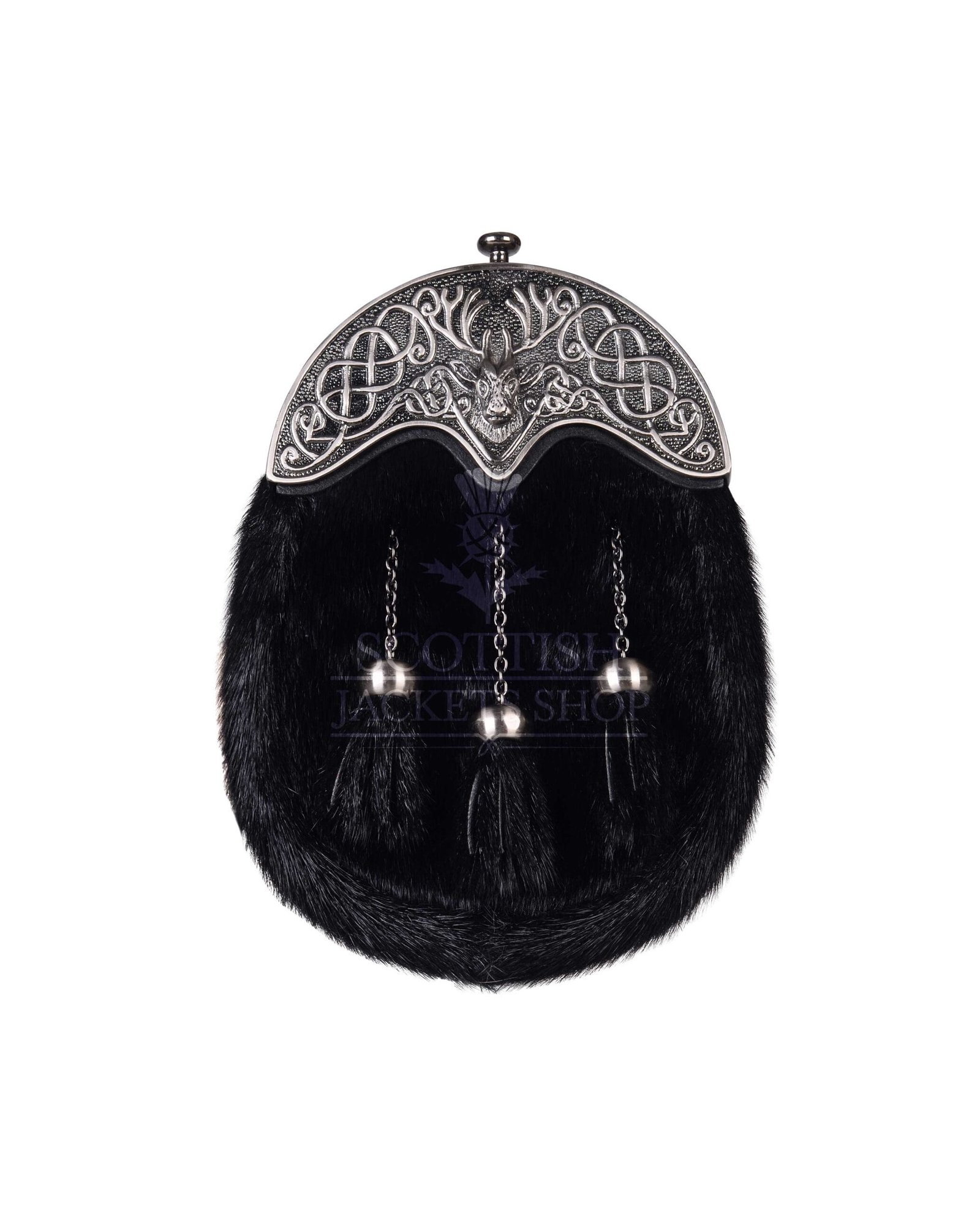 Black Seal Fur Full Dress Sporran Silver Stag Cantle