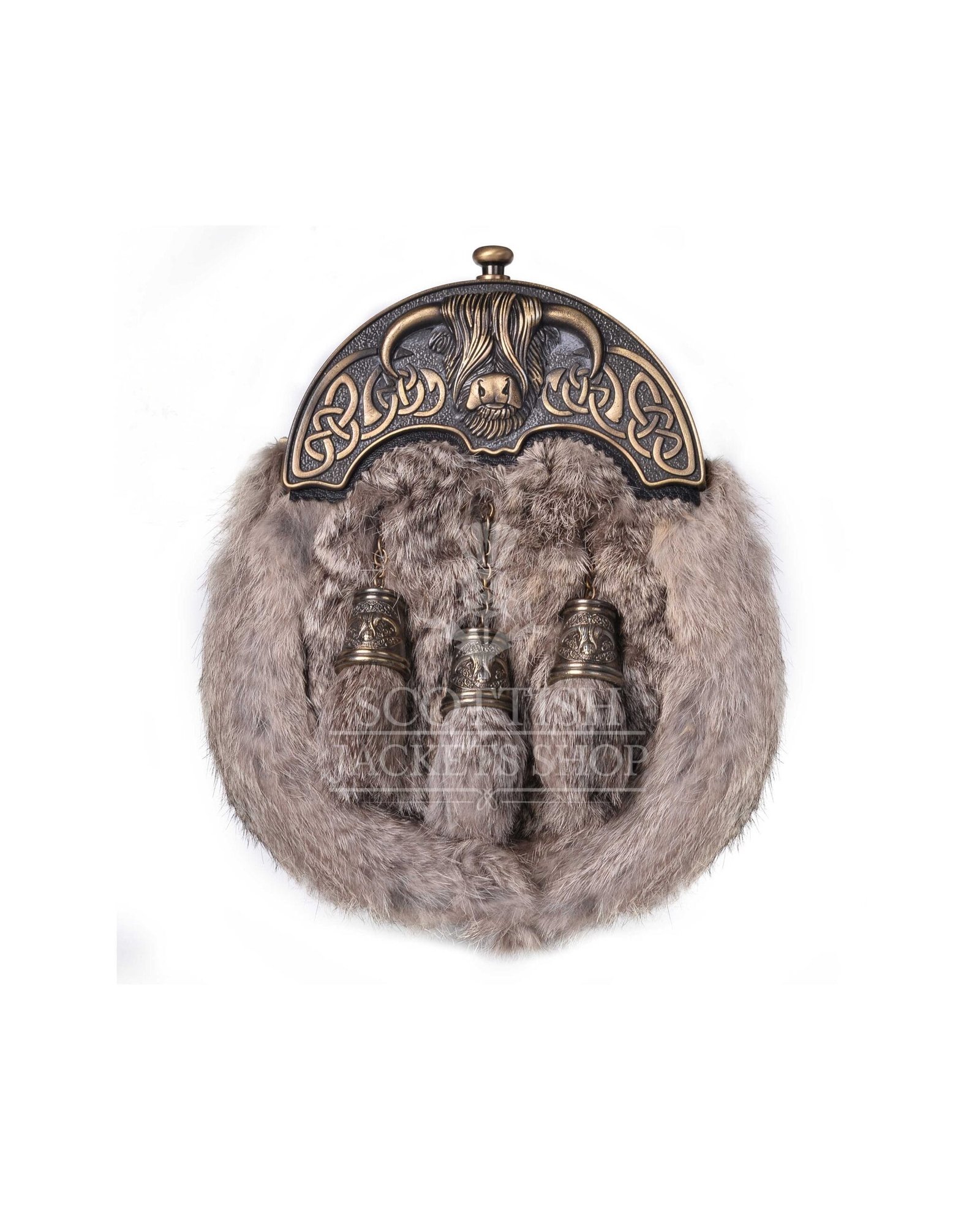 Brass Highland Cow Brown Rabbit Fur Full Dress Sporran