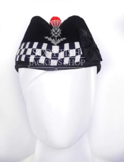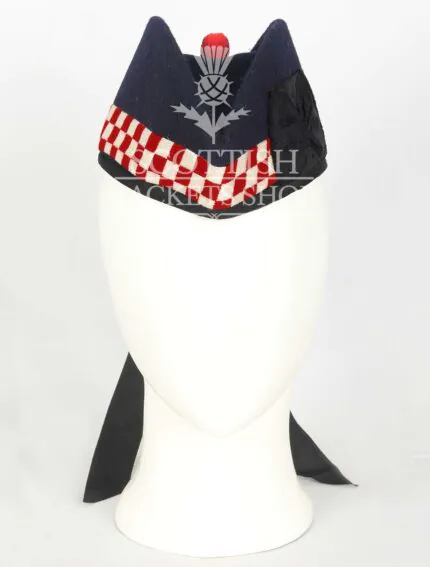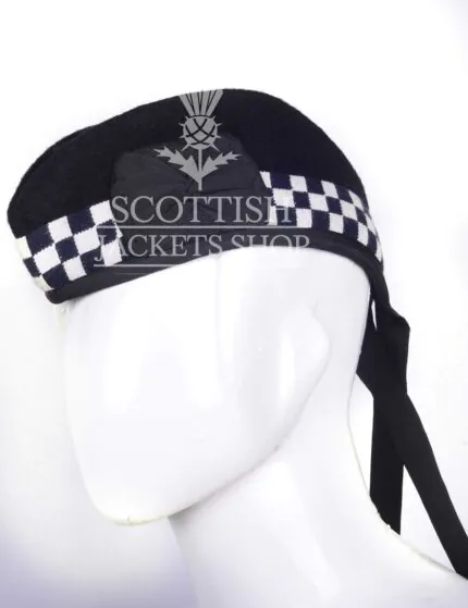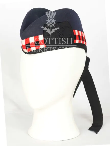 The structured crown and neatly folded sides stay true to classic Scottish headwear, while the black ribbon detail adds a refined finishing touch. Designed for comfort and durability, this cap keeps its shape during extended wear, making it perfect for parades, Highland games, clan gatherings, or everyday outings.
