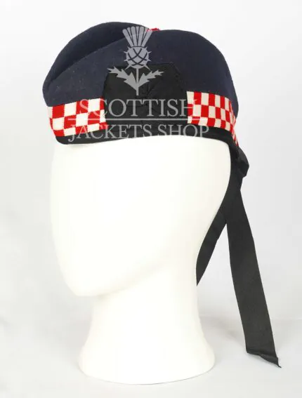 Navy Blue Wool Red White Black Diced Glengarry Cap