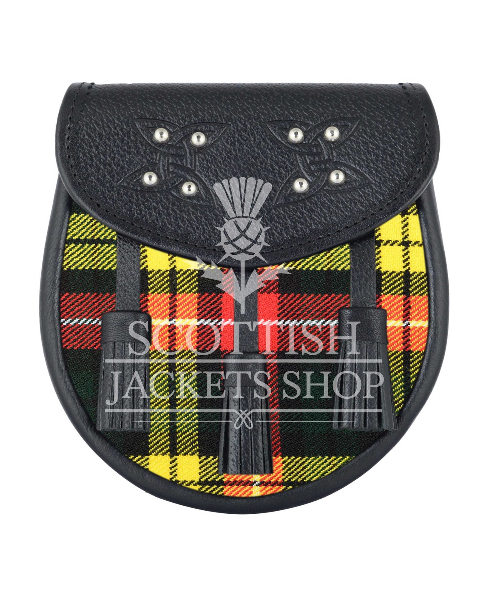 Celebrate the bold spirit of Highland heritage with the Buchanan Tartan Sporran — a vibrant and timeless accessory designed for those who take pride in their Scottish roots. Featuring the eye-catching Buchanan tartan, known for its brilliant blend of red, yellow, green, and blue tones, this sporran is a perfect match for formal occasions, clan gatherings, and ceremonial wear.