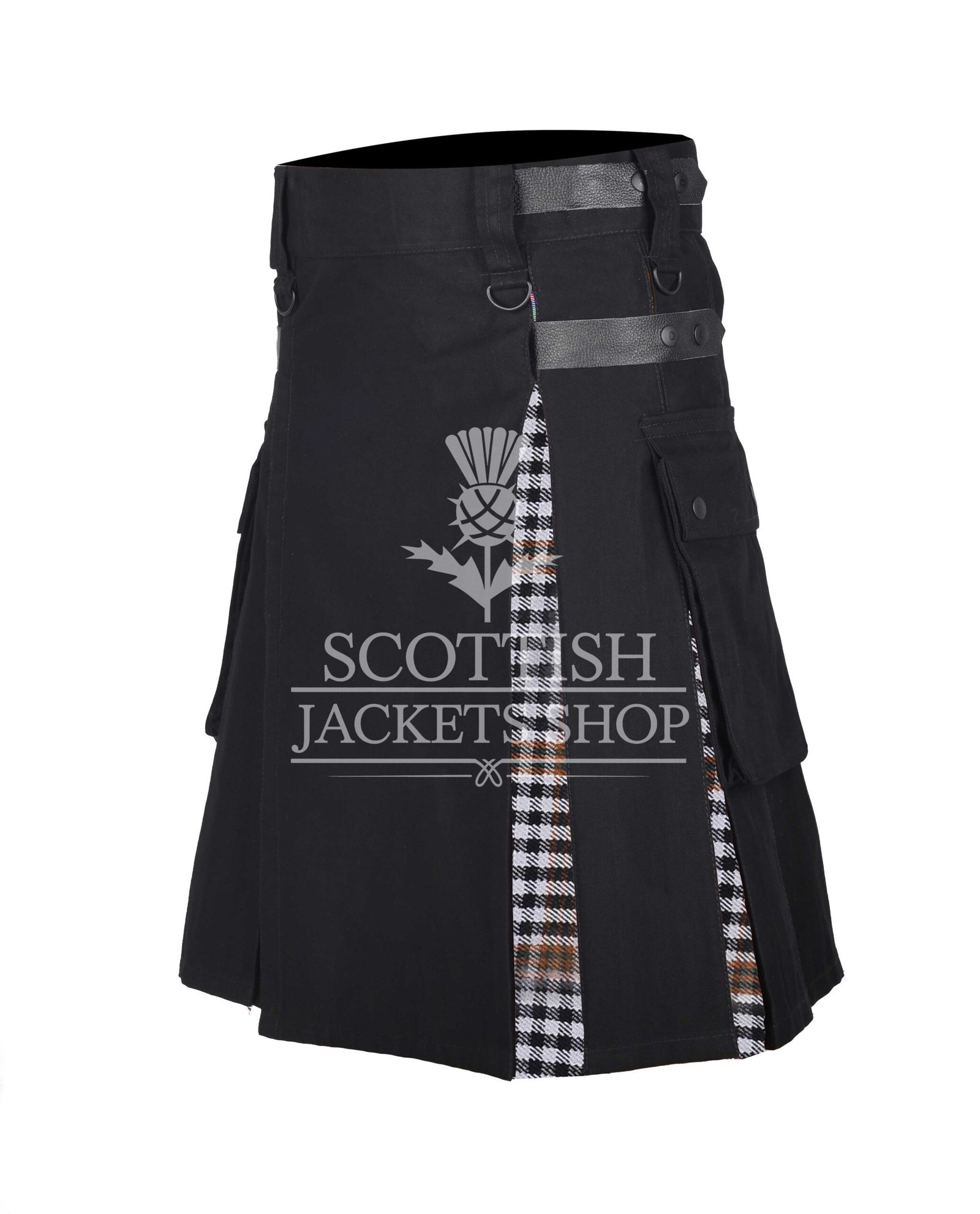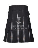 Crafted for function and durability, this hybrid kilt includes heavy-duty cotton panels on the sides that provide strength and breathability. Two spacious cargo pockets come with snap closures, offering ample storage for your daily essentials—ideal for festivals, Highland games, or work settings. The knife pleats ensure ease of movement while preserving the kilt’s traditional silhouette.