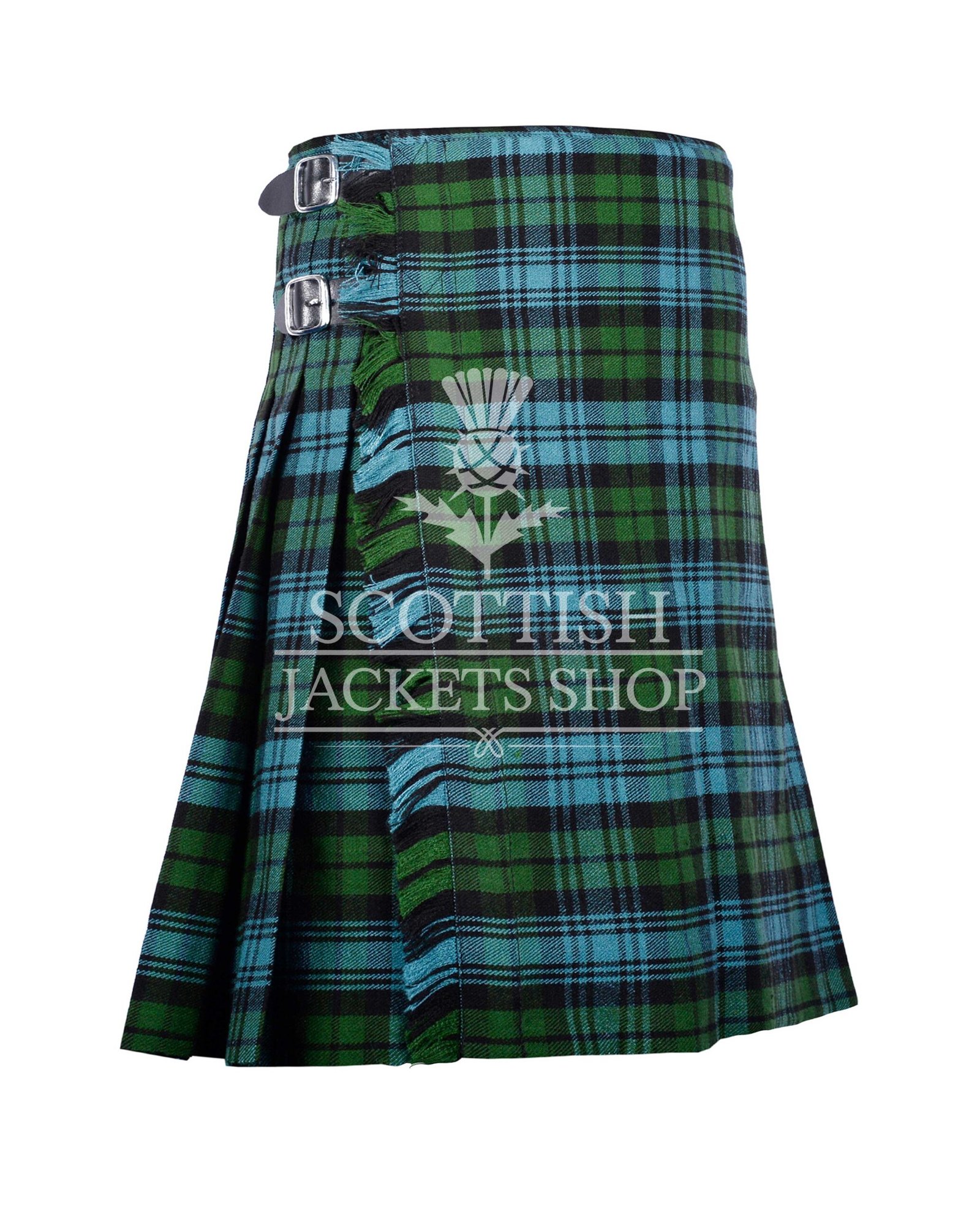 Celebrate your heritage in style with the Campbell Ancient Tartan 8-Yard Kilt, expertly crafted for those who value tradition, quality, and timeless design. Made from 100% pure new wool, this full-length kilt features the rich blues and greens of the ancient Campbell tartan, a pattern steeped in centuries of Scottish history.