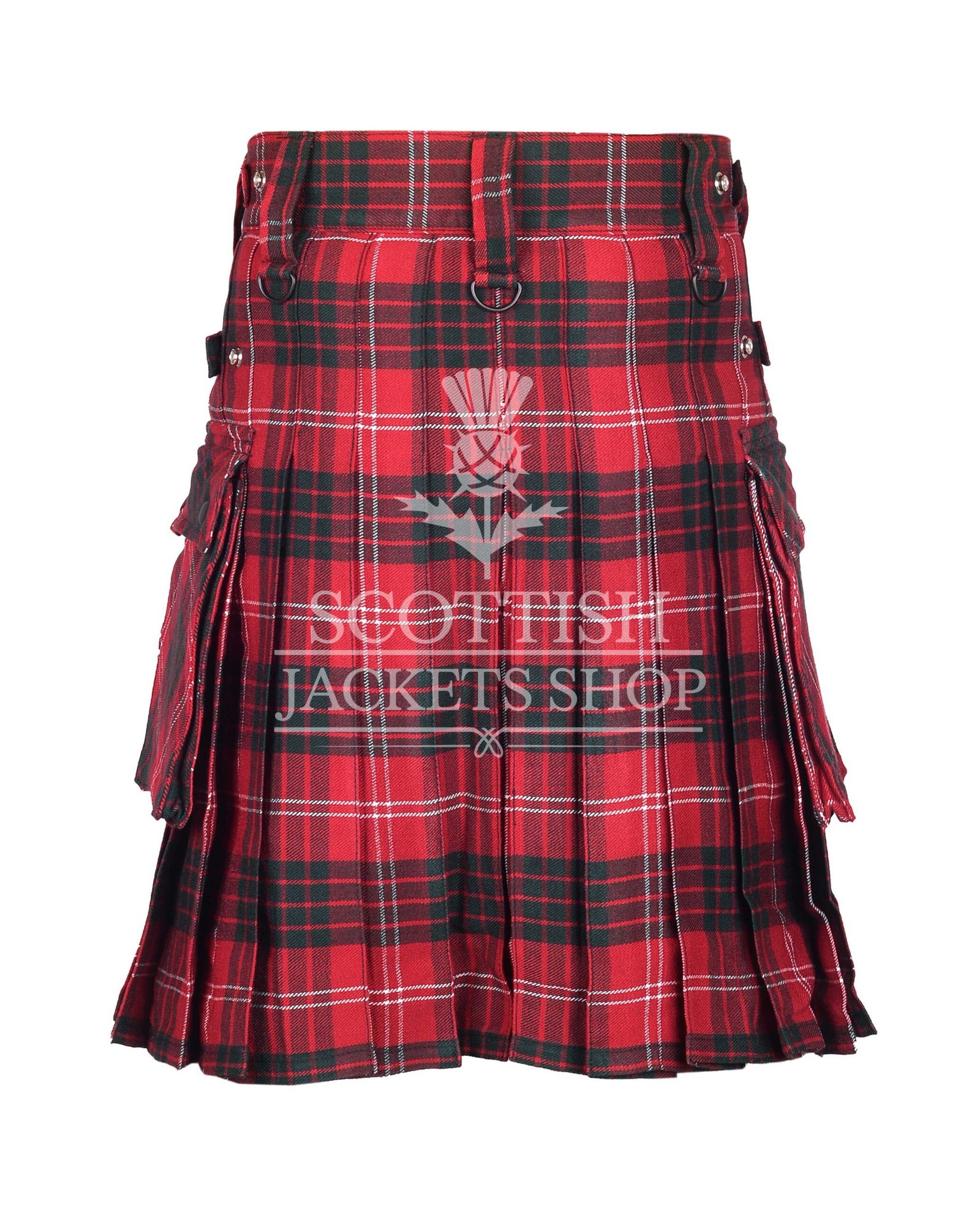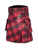 Step into tradition with a bold twist in the Crawford Tartan Bias Apron Utility Kilt, designed for men who proudly wear their heritage and need rugged functionality for daily life. We construct this kilt from durable acrylic wool and showcase the vibrant Crawford Tartan. Its deep reds, forest greens, navy, and bold black stripes reflect the strength and legacy of the Crawford clan.