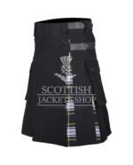 heritage and modern utility. This kilt combines the iconic elegance of the Gordon Dress Tartan Hybrid Kilt —featuring deep green, navy, and yellow—with rugged black cotton panels, making it perfect for both formal and functional wear.