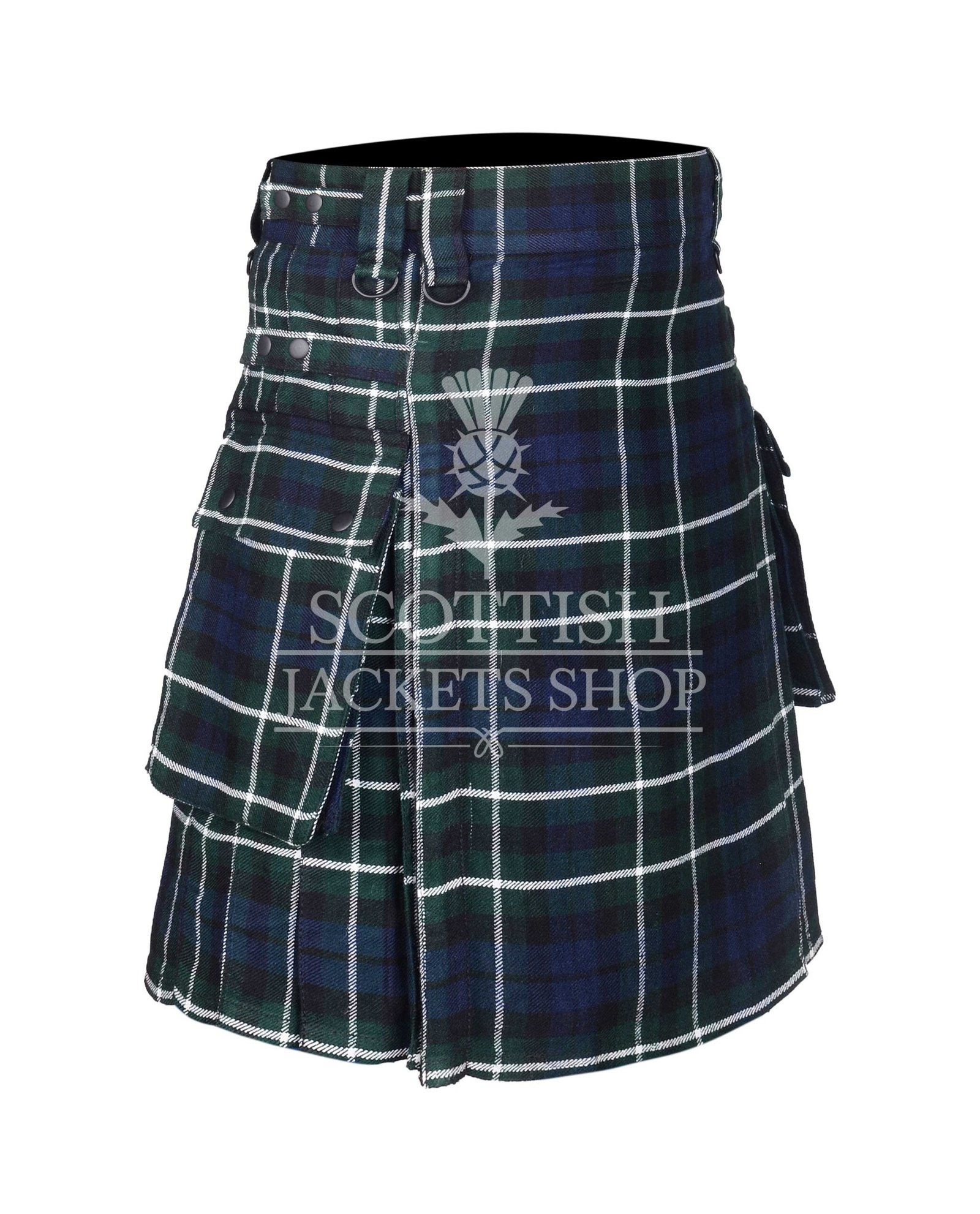 We designed this kilt to handle the challenges of modern life while preserving traditional Highland style. Two large cargo pockets on the sides provide secure storage for your phone, wallet, or work tools. Flaps with rust-resistant brass snaps protect your belongings and keep them within easy reach. We reinforced the kilt’s structure using solid brass buckles, snaps, and rivets, ensuring rugged durability and a bold, masculine finish.