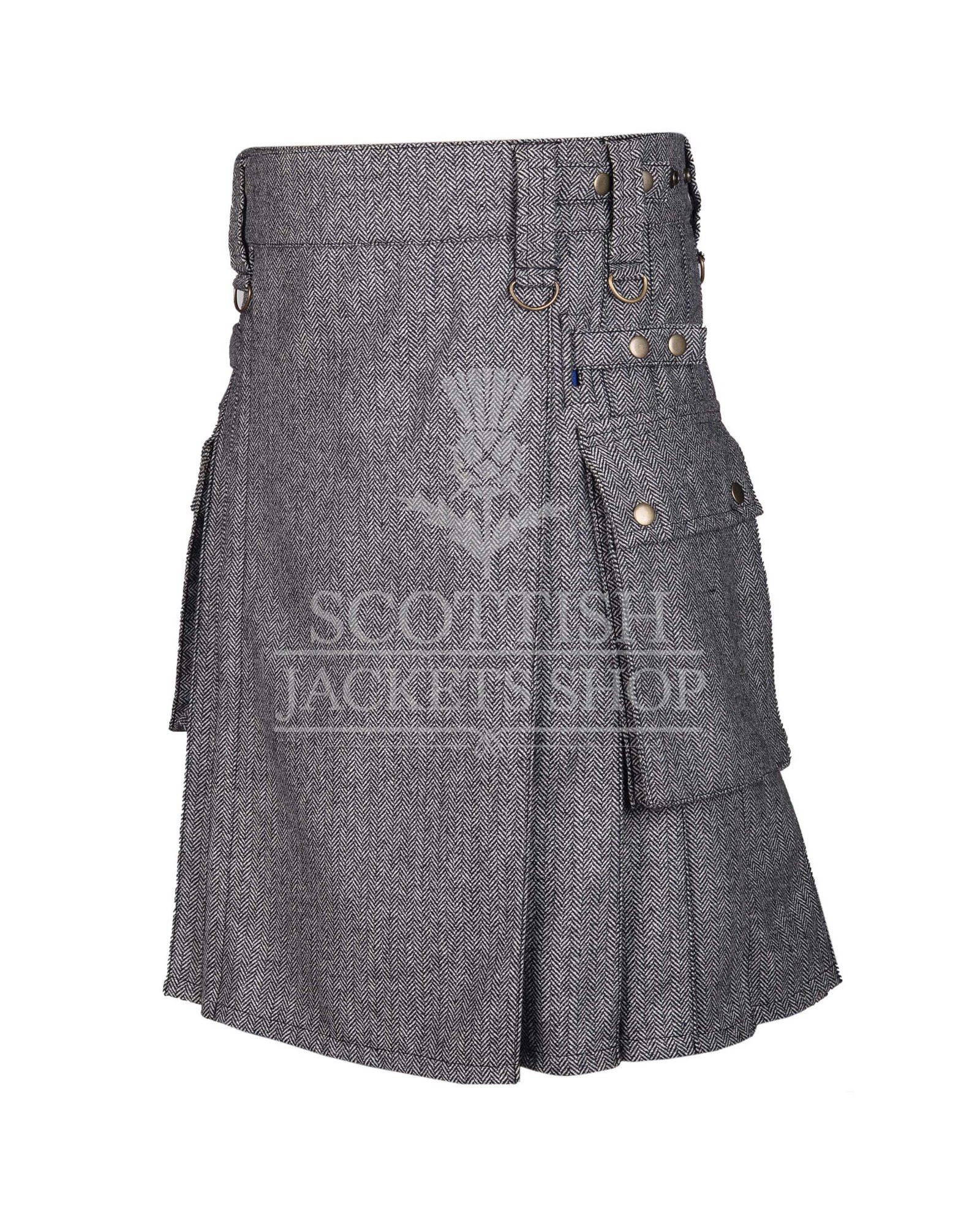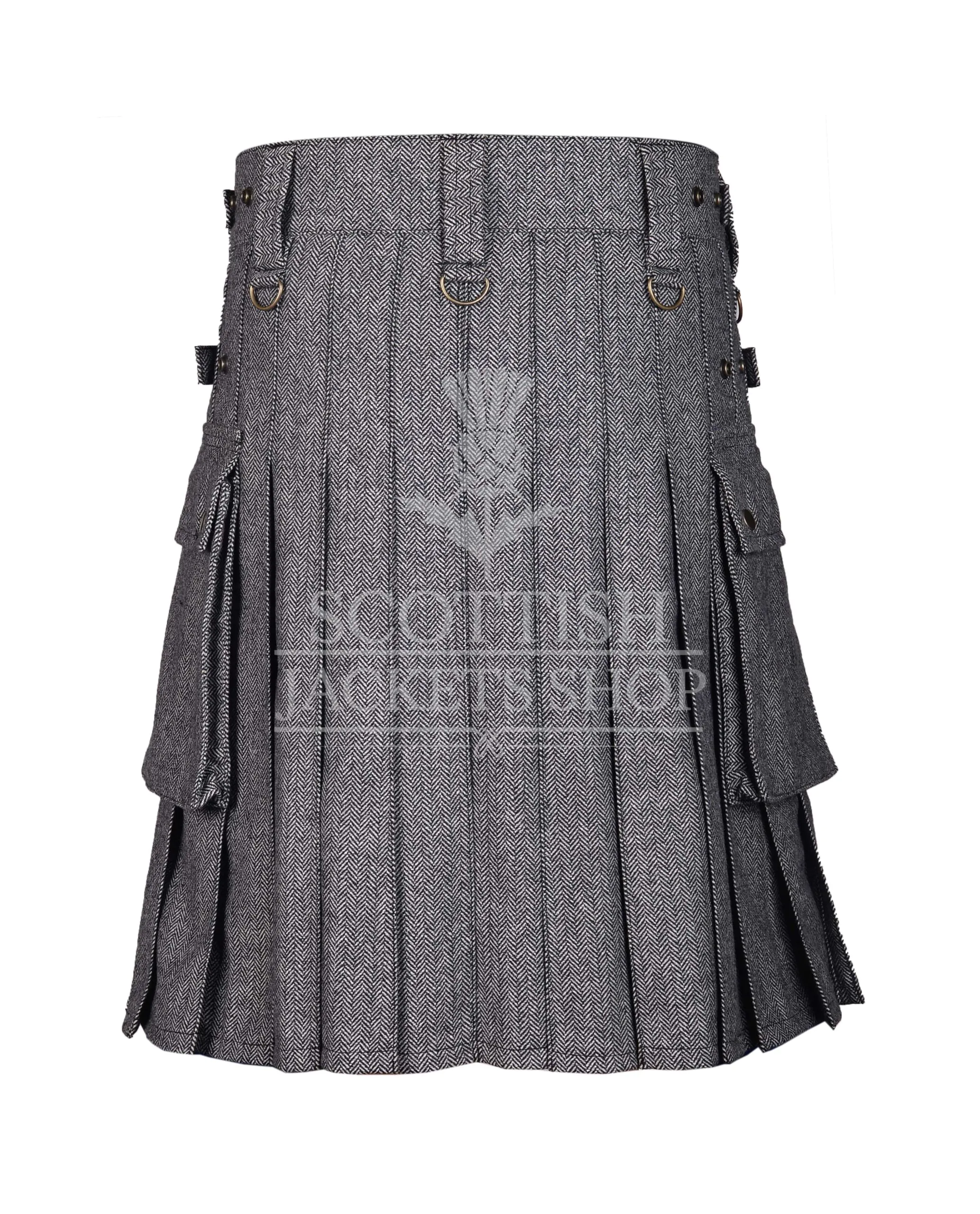 Step into timeless style and rugged utility with our Gray Tweed Utility Kilt – the perfect fusion of traditional Scottish heritage and modern-day functionality. Crafted from premium wool-blend tweed, this kilt offers a sleek, tailored look while providing unmatched comfort and durability.