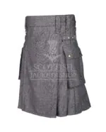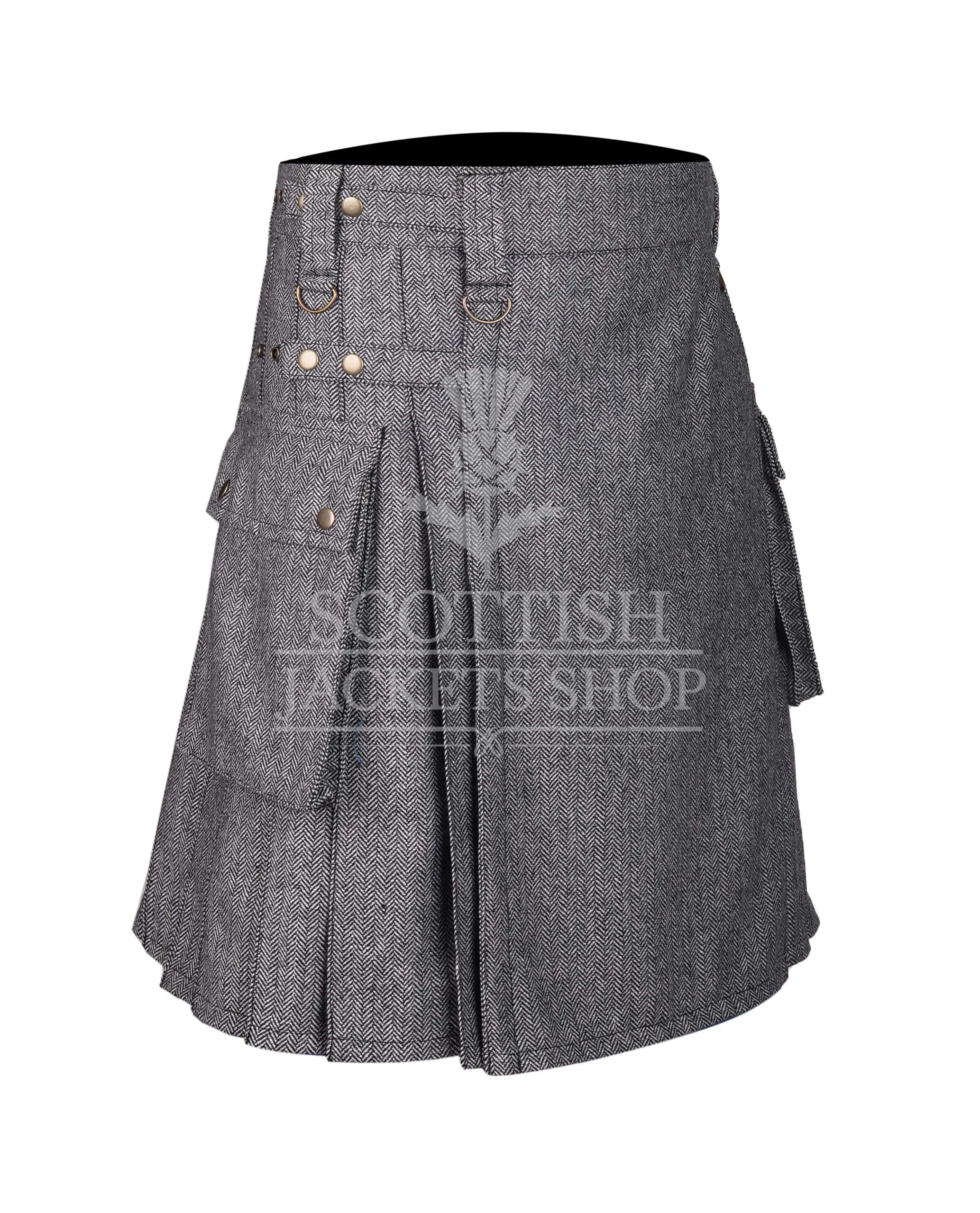 Pair it with a crisp shirt and boots for an urban edge, or go classic with a sporran and ghillie brogues for traditional flair. This Gray Tweed Utility Kilt stands out as a versatile wardrobe essential, blending old-world charm with contemporary design.