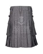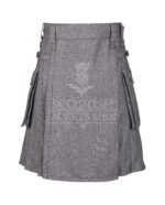Pair it with a crisp shirt and boots for an urban edge, or go classic with a sporran and ghillie brogues for traditional flair. This Gray Tweed Utility Kilt stands out as a versatile wardrobe essential, blending old-world charm with contemporary design.