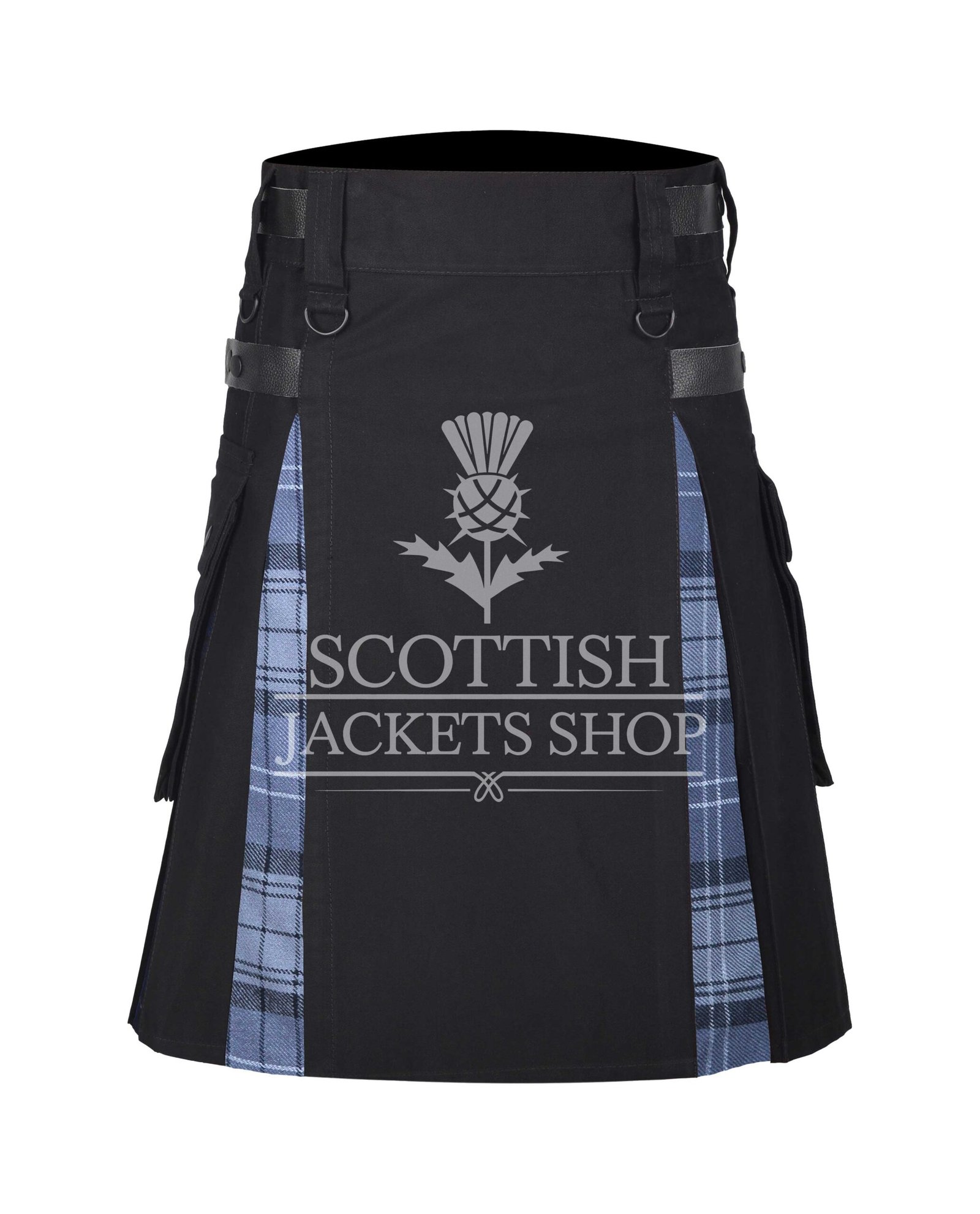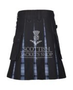 The Hamilton Gray Hybrid Kilt is a modern take on Scottish tradition, offering a bold and functional style for everyday wear or special occasions. This hybrid kilt fuses the timeless elegance of the Hamilton Gray tartan with rugged black cotton, creating a look that is both classic and contemporary.