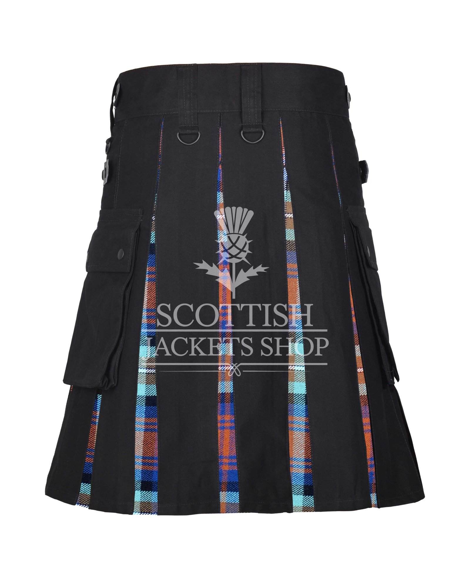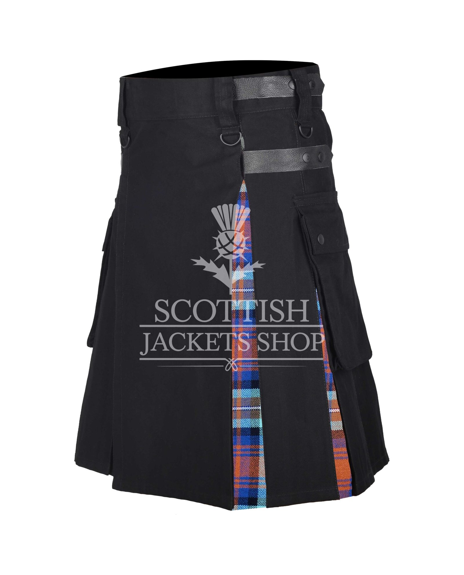 The Irn Bru Hybrid Kilt is a bold and vibrant tribute to Scotland’s most iconic soft drink. Made from high-quality acrylic wool and heavy-duty black cotton, the kilt offers both durability and comfort. The tartan front showcases bright, energetic colors that pay homage to the cultural legend that is Irn Bru, while the solid black cotton sides and back create contrast and modern appeal.