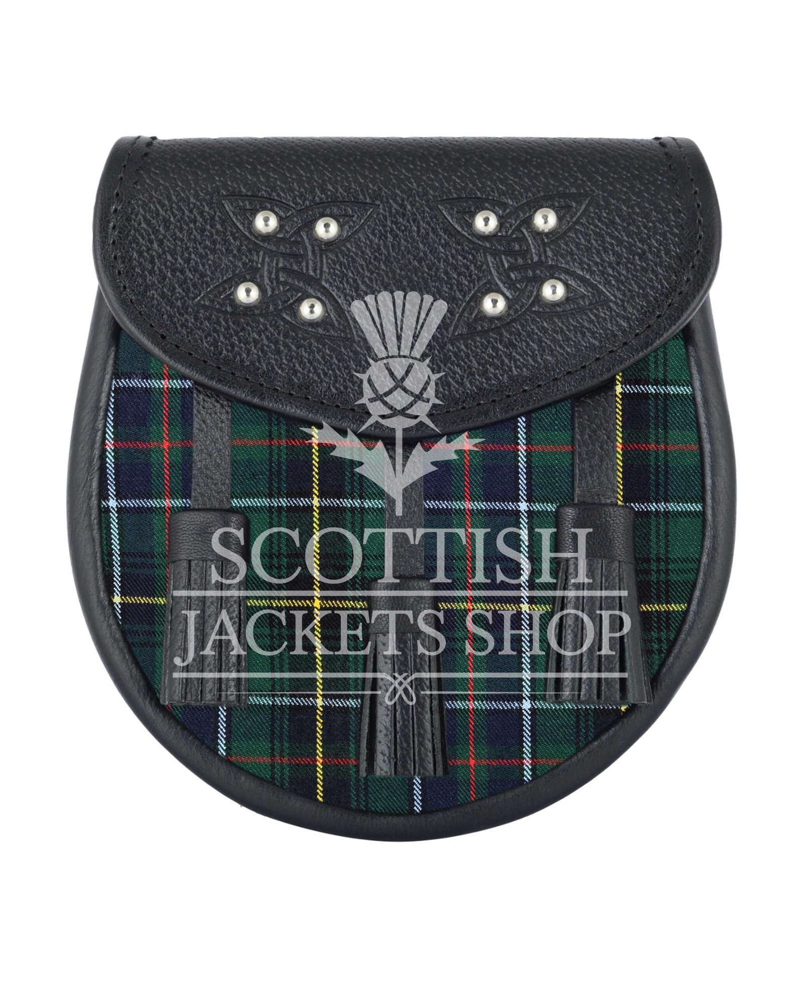 Features authentic MacInnes clan tartan and genuine black leather