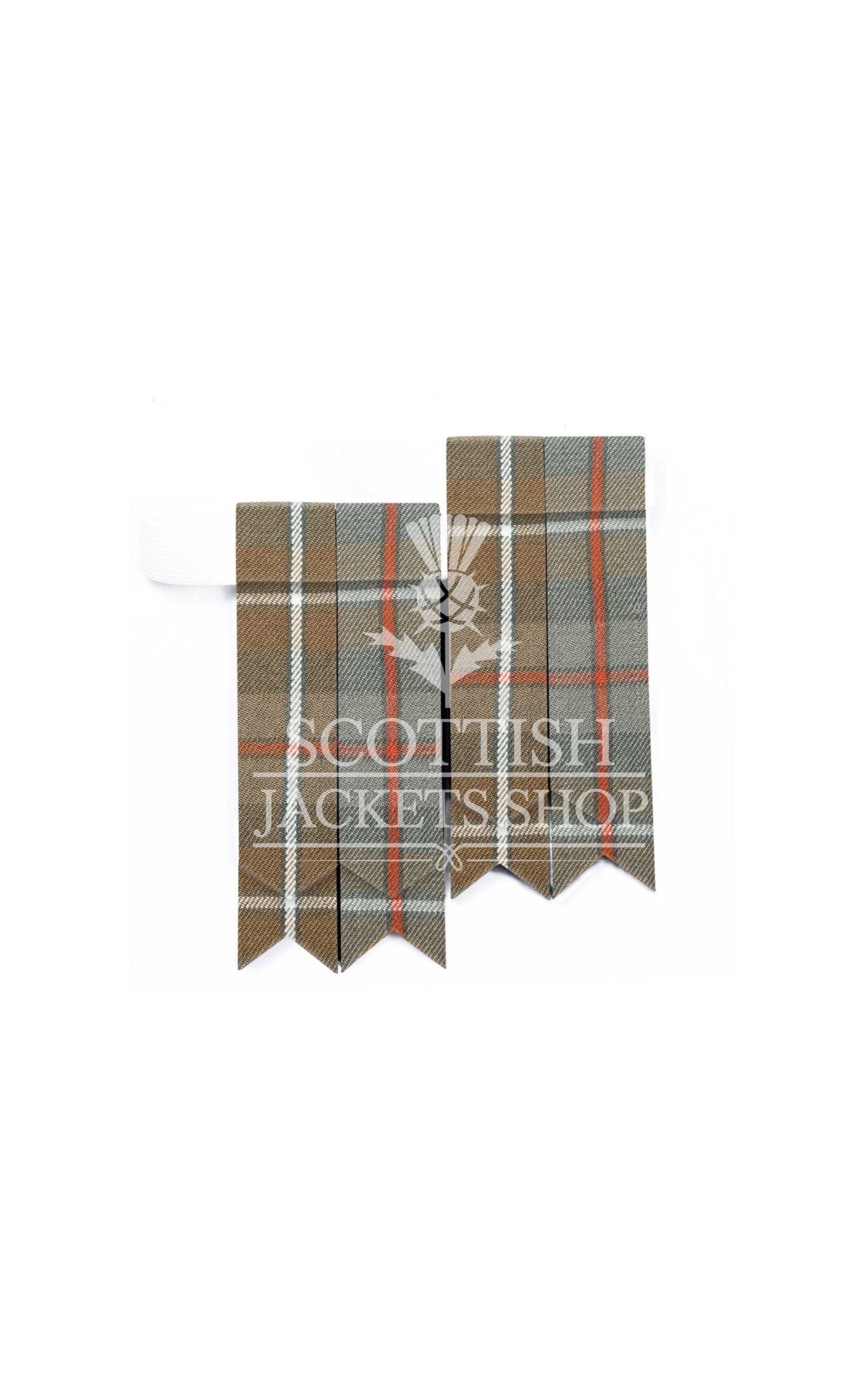 Step confidently into tradition with the Mackenzie Weathered Tartan Flashes—an accessory that blends rustic Highland heritage with timeless style.