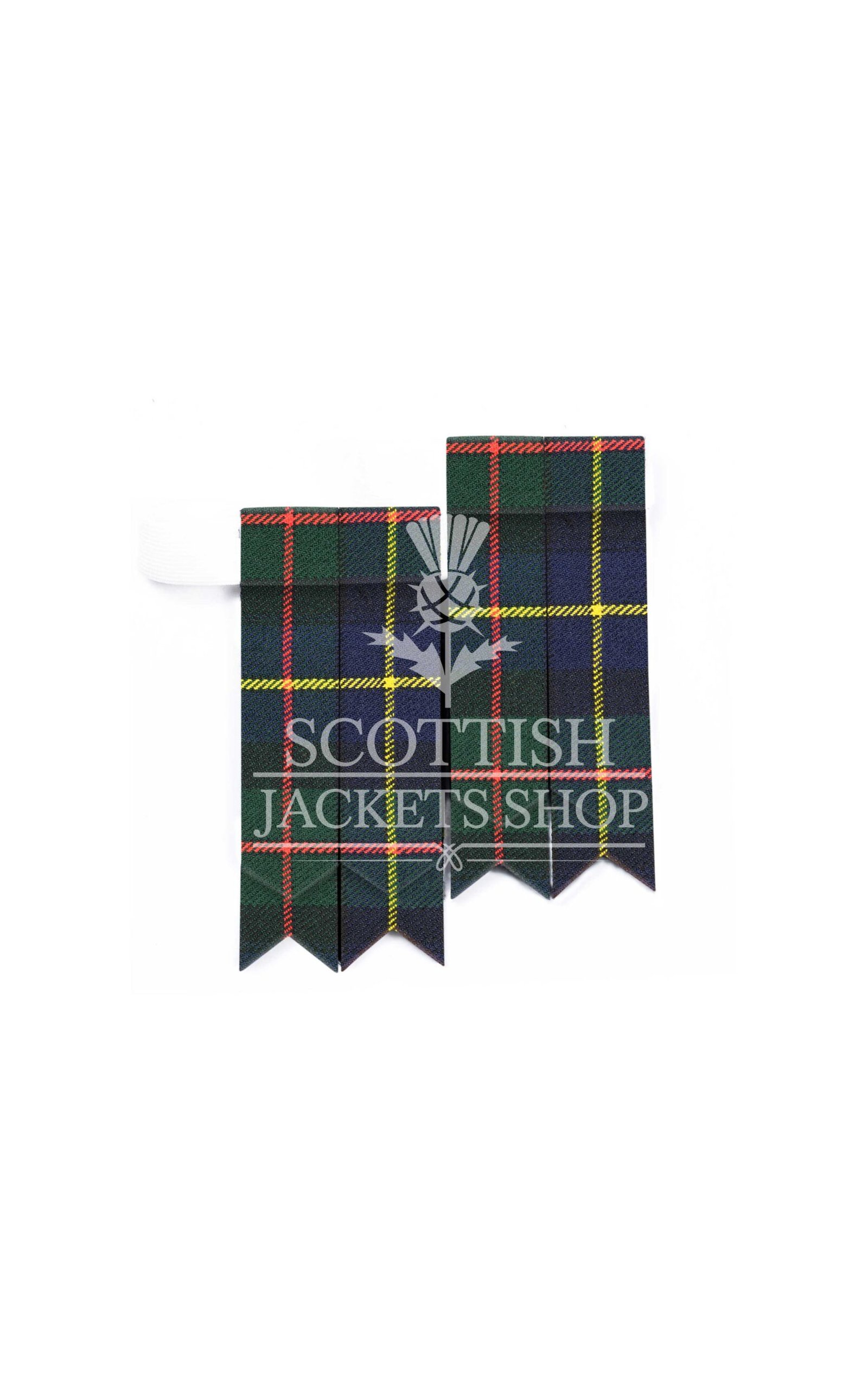 Crafted from premium woven tartan fabric, the MacLeod of Harris Tartan Flashes combine durability with comfort. Their balanced colors offer a refined contrast against kilt hose, giving your outfit a polished and authentic appearance. Each pair includes an adjustable elastic garter and a secure hook-and-loop fastening, ensuring a reliable fit that stays firmly in place throughout the day.