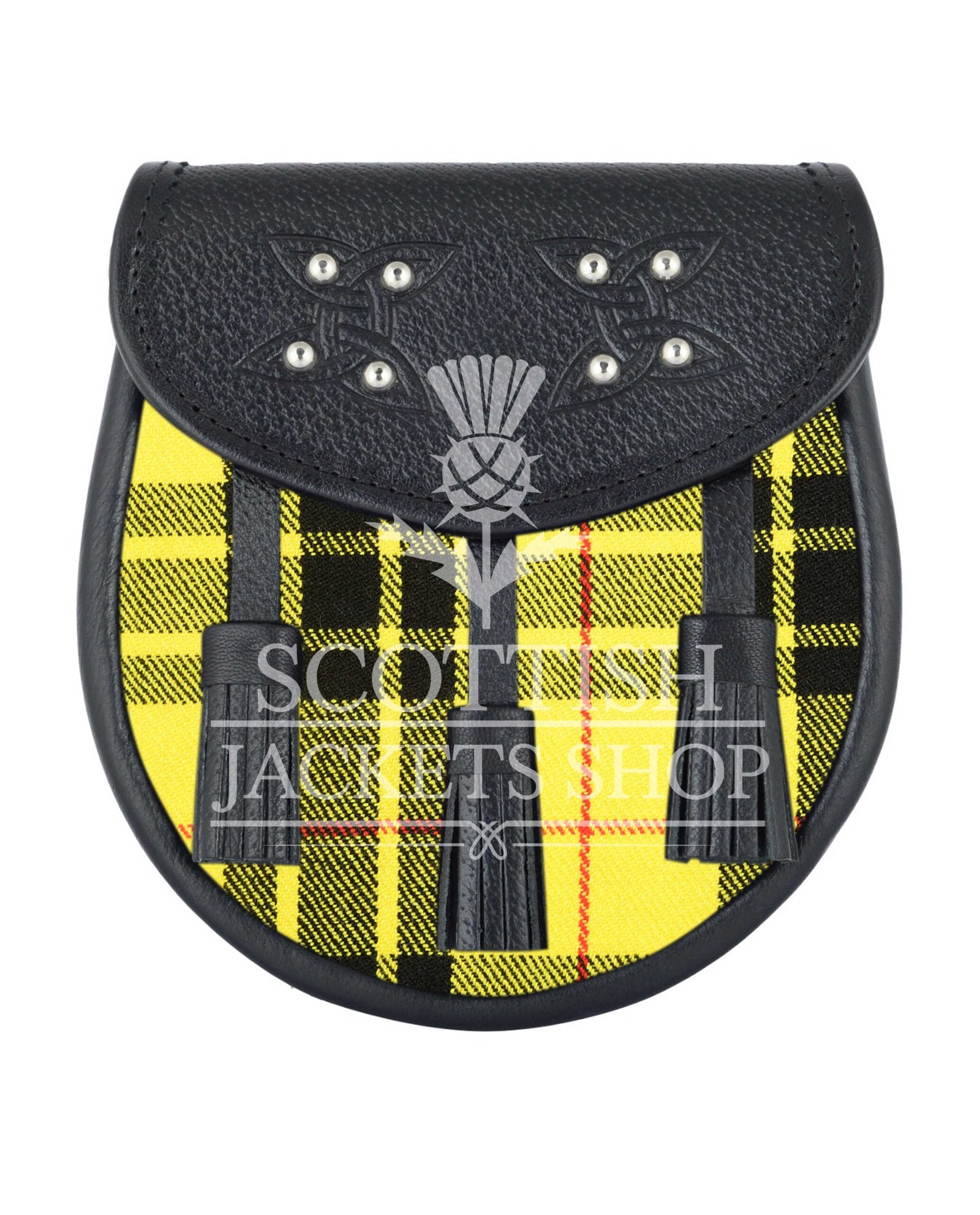 Expertly handcrafted, this sporran features a front panel made from genuine Macleod of Lewis tartan wool, chosen for its durability and bold color. The strong leather body and flap—available in classic black or rustic brown—create a beautiful contrast with the vibrant tartan. This combination offers a timeless aesthetic rooted in tradition yet perfect for modern occasions.