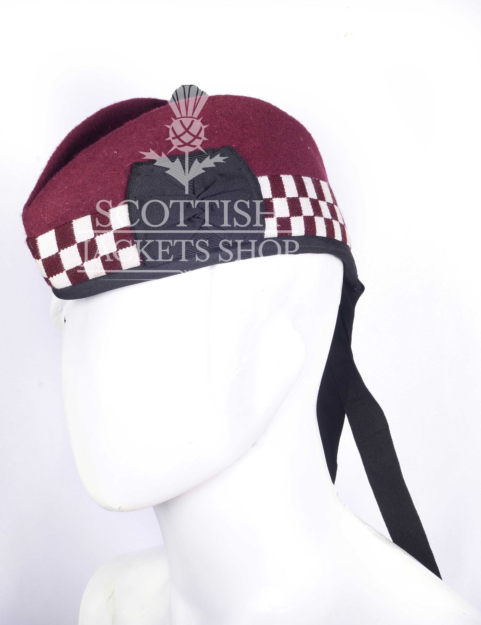 Add a touch of vibrant charm to your Highland attire with the Maroon Wool Maroon White Diced Glengarry Cap. This timeless piece of Scottish headwear combines classic Glengarry styling with a refreshing color palette, perfect for those who want to stand out while honoring tradition.