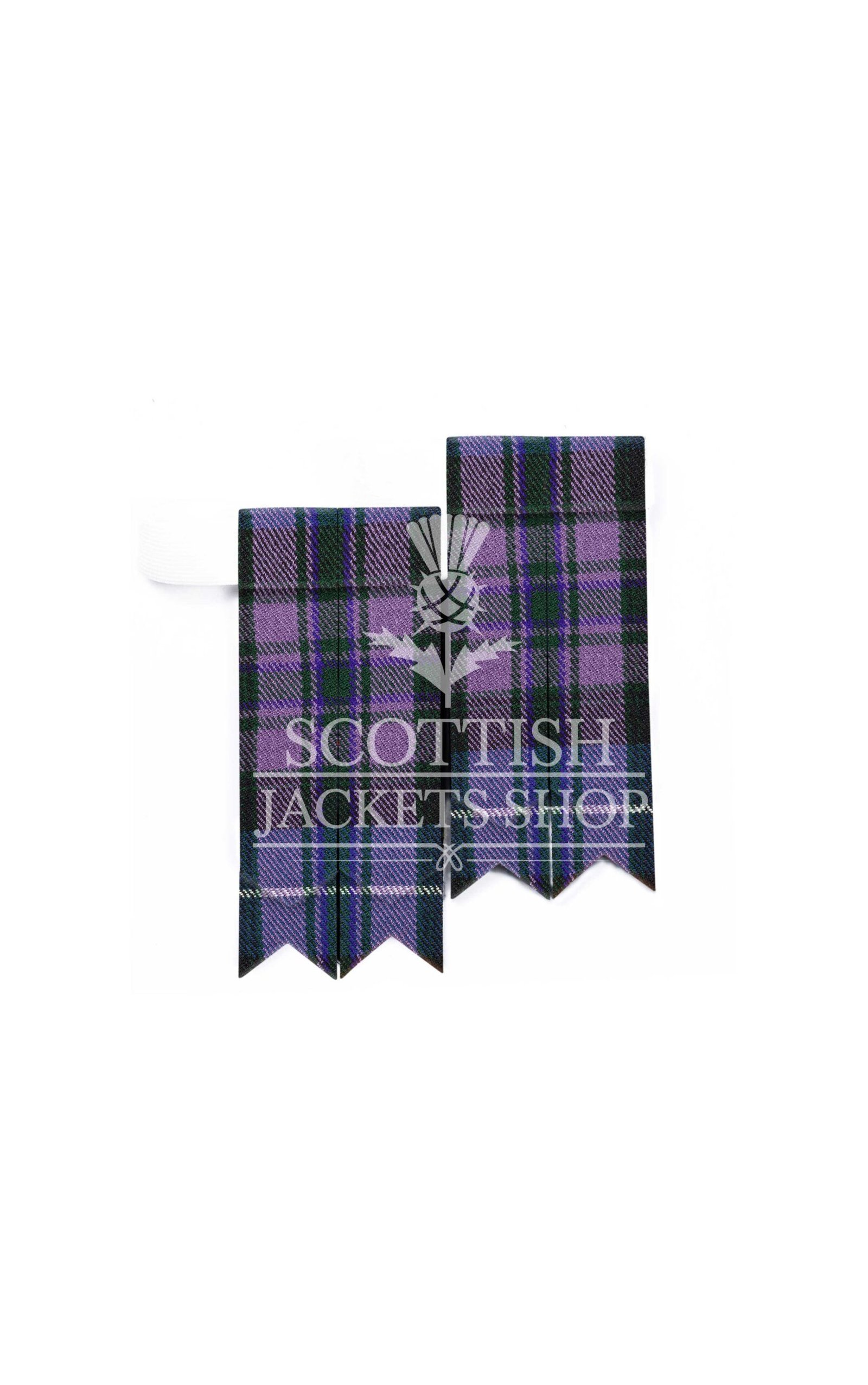 Add a touch of distinction to your Highland outfit with the Pride of Scotland Tartan Flashes, designed to showcase both tradition and national pride. Featuring a striking combination of purple, navy blue, black, and white with fine red accents, this modern tartan stands out for its bold and stylish design. Perfect for weddings, ceilidhs, Highland games, or formal events, these flashes provide the finishing touch that completes your authentic Scottish look.