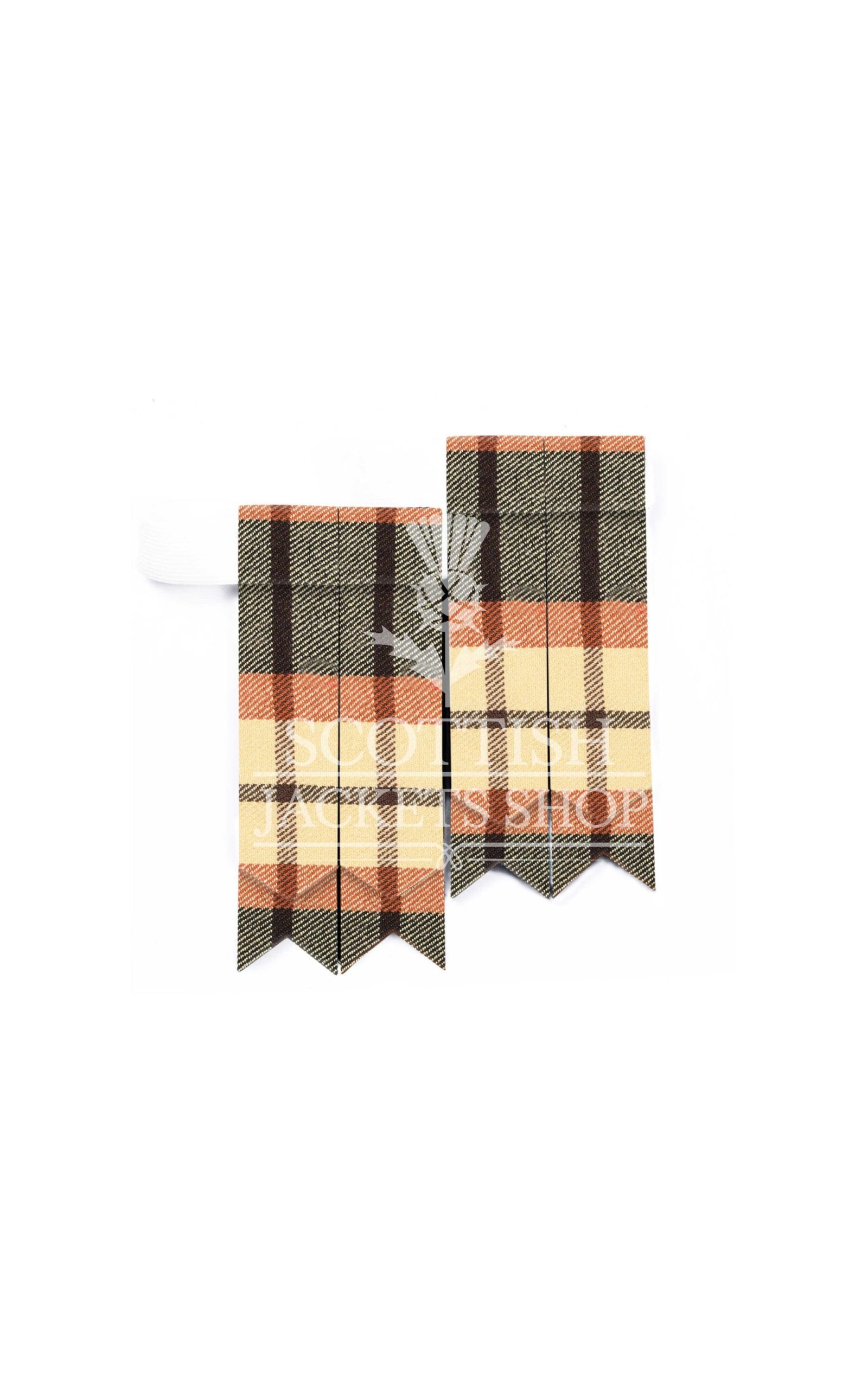Flashes are more than decorative—they serve the important purpose of preventing kilt hose from slipping, while also adding symmetry and balance to your ensemble. The clean-cut edges and precise stitching reflect traditional craftsmanship, ensuring your flashes are both stylish and long-lasting.
