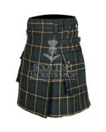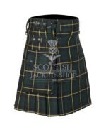 Honor the fearless spirit of Clan Wallace with the Wallace Hunting Tartan Utility Kilt, designed for men who demand heritage, durability, and functional design. We craft this kilt from premium acrylic wool and feature the bold Wallace Hunting Tartan, a deep pattern of forest greens, rich blacks, and subtle red lines that reflect the wild, untamed spirit of the Scottish Highlands.