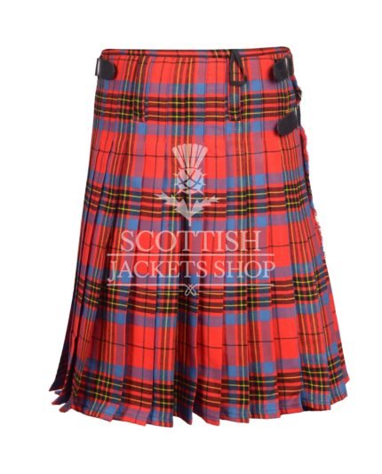 We craft this kilt from durable acrylic wool in Leslie Red Ancient Tartan